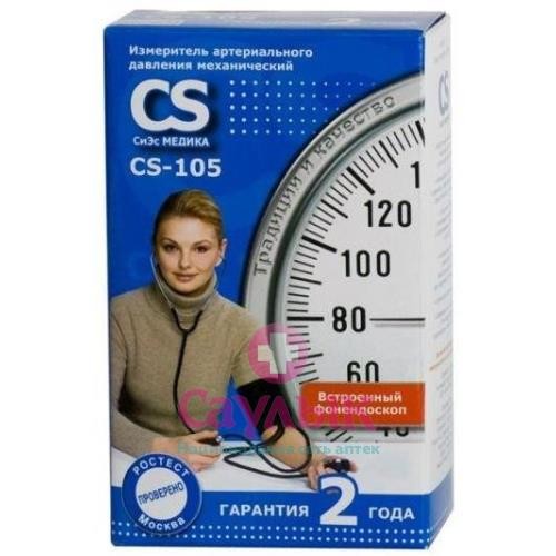 Тонометр со встроенным фонендоскопом поможет быстро и без проблем измерить ваше артериальное давление. Груша прибора выполнена из мягкой и эластичной резины, которая позволяет нагнетать воздух в манжету без особых усилий. В груше установлен воздушный клапан, благодаря которому механизм манометра и ниппеля защищены от попадания в них пыли и мелких частиц. В конструкции манжеты тонометра CS 105 присутствует металлическое кольцо, позволяющее легко и быстро закрепить манжету на руке без посторонней помощи.