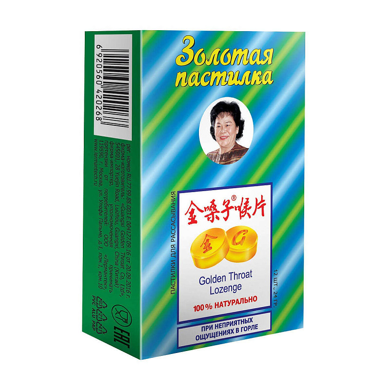Купить ЗОЛОТАЯ ПАСТИЛКА САХ. П/НЕПРИЯТ. ОЩУЩ. В ГОРЛЕ №12 в Казани
