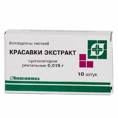 Один суппозиторий содержит: красавки экстракт густой (белладонны листьев) — 15 мг и вспомогательные компоненты: фенол синтетический для медицинских целей — 1,4 мг, полиэтиленоксид 1500 (макрогол 1500) и полиэтиленоксид 400 (макрогол 400) — достаточное количество до получения суппозитория массой 1,6 г.