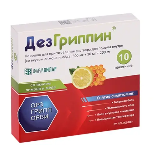 Купить ДЕЗГРИППИН МЕД+ЛИМОН 5Г. №10 ПОР. Д/Р-РА Д/ПРИЕМА ВНУТРЬ ПАК. в Казани