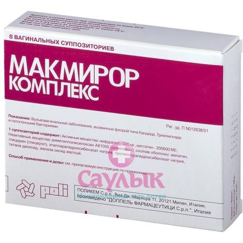 Купить МАКМИРОР КОМПЛЕКС КАПС. ВАГ. 200000МЕ+500МГ №8 в Казани