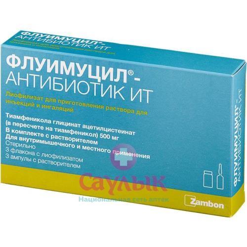 Купить ФЛУИМУЦИЛ-АНТИБИОТИК ИТ ЛИОФ. Д/ПРИГ. Р-РА Д/ИН. И Д/ИНГАЛ. 500МГ №3 В КОМПЛЕКТЕ С РАСТВОРИТЕЛЕМ: ВОДА ДЛЯ ИНЪЕКЦИЙ (АМПУЛЫ) 4 МЛ-3 ШТ. в Казани