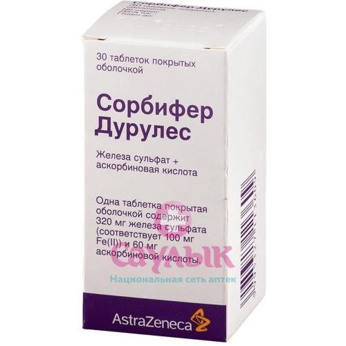Дурулес - это технология, которая обеспечивает постепенное высвобождение активного вещества (ионов железа), равномерное поступление лекарственного препарата. Прием по 100 мг 2 раза в день обеспечивает на 30 % большее всасывание железа из препарата Сорбифер Дурулес по сравнению с обычными препаратами железа.Абсорбция и биодоступность железа - высокие. Железо всасывается преимущественно в двенадцатиперстной кишке и проксимальной части тощей кишки. Связь с белками плазмы - 90 % и более. Депонируется в виде ферритина или гемосидерина в гепатоцитах и клетках системы фагоцитирующих макрофагов, незначительное количество - в виде миоглобина в мышцах. Период полувыведения составляет 6 часов.