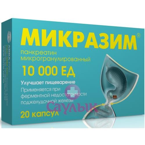 Микразим® - пеллеты панкреатина в капсулах. В состав препарата входят натуральные ферменты из поджелудочной железы животных - протеаза, липаза