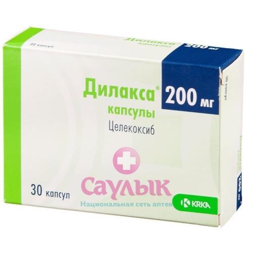 Внутрь, не разжевывая, запивая водой, независимо от приема пищи.Поскольку риск сердечно-сосудистых осложнении может возрастать с увеличением дозы и продолжительности приема препарата Дилакса, следует принимать минимальную эффективную дозу препарата минимально возможным коротким курсом. Максимальная рекомендуемая суточная доза при длительном приеме составляет 400 мг.Симптоматическое лечение остеоартроза: рекомендуемая доза составляет 200 мг в сутки в 1 или 2 приема.Симптоматическое лечение ревматоидного артрита: рекомендуемая доза составляет 100 мг или 200 мг 2 раза в сутки.Симптоматическое лечение анкилозирующего спондилита: рекомендуемая доза составляет 200 мг в сутки в 1 или 2 приема. У некоторых пациентов отмечена эффективность применения 400 мг 2 раза в сутки.Лечение болевого синдрома и первичной дисменореи: рекомендуемая начальная доза составляет 400 мг, с последующим, при необходимости, приемом дополнительной дозы в 200 мг в первый день. В последующие дни рекомендуемая доза составляет 200 мг 2 раза в сутки, по необходимости.Пациенты пожилого возраста: обычно коррекции дозы не требуется. Однако у пациентов с массой тела менее 50 кг лечение лучше начинать с минимальной рекомендуемой дозы.Нарушение функции печени: у пациентов с легкой степенью тяжести печеночной недостаточности (класс А по классификации Чайлд-Пью) коррекции дозы не требуется. В случае наличия печеночной недостаточности средней степени тяжести (класс В по классификации Чайлд-Пью) лечение следует начинать с минимальной рекомендуемой дозы.Опыта применения препарата Дилакса у пациентов с тяжелой степенью тяжести печеночной недостаточностью (класс С по классификации Чайлд-Пью) нет (см. разделПротивопоказания).Нарушение функции почек: у пациентов с легкой и средней степенью тяжести почечной недостаточности коррекции дозы не требуется. Опыта применения препарата Дилакса у пациентов с тяжелой степенью тяжести почечной недостаточностью нет (см. разделы Особые указания, Противопоказания).Одновременное применение с флуконазолом: пациентам, принимающим флуконазол (ингибитор изофермента CYP2C9), препарат Дилакса следует принимать в минимальной рекомендуемой дозе. Следует соблюдать осторожность при одновременном применении с другими ингибиторами изофермента CYP2C9.Медленный метаболизм субстратов изофермента CYP2C9: у пациентов, являющихся медленными метаболизаторами или с подозрением на такое состояние, следует применять препарат Дилакса с осторожностью, так как это может привести к накоплению целекоксиба в высоких концентрациях в плазме крови. У таких пациентов следует снизить начальную рекомендуемую дозу в 2 раза.
