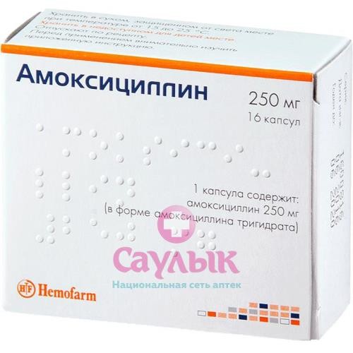 Абсорбция быстрая, высокая, (около 93%), прием пищи не оказывает влияния на абсорбцию, амоксициллин не разрушается в кислой среде желудка. При приеме внутрь в дозе 250 мг максимальная концентрация в плазме крови (Сmах) достигается через 1-2 ч (ТСmах) и составляет 3,5-5 мкг/мл. Период полувыведения (Т1/2) -1-1,5 ч. Связь с белками плазмы около 17%. Интенсивно распределяется по органам и тканям, обнаруживается в биологических жидкостях и патологическом отделяемом, преодолевает гистогематические барьеры, кроме неизмененного гематоэнцефалического. В высоких концентрациях обнаруживается в плазме крови, легочной, костной и жировой тканях, слизистой оболочке кишечника, женских половых органах, предстательной железе, желчном пузыре (при нормальной функции печени), тканях плода, плевральной и перитонеальной жидкости, содержимом кожных волдырей, мокроте, бронхиальном секрете (в меньшей степени в гнойном отделяемом), в экссудате при воспалении среднего уха. Концентрация в желчи превышает концентрацию в плазме крови в 2-4 раза. В амниотической жидкости и сосудах пуповины концентрация амоксициллина составляет 25-30% от значения в плазме беременной женщины. При воспалении мозговых оболочек амоксициллин преодолевает гематоэнцефалический барьер, концентрация его в спинномозговой жидкости, достигает 20% от таковой в плазме крови. В небольшом количестве проникает в грудное молоко. При увеличении дозы концентрация амоксициллина в органах и тканях возрастает пропорционально.Частично метаболизируется до неактивной пеницилловой кислоты. Выводится преимущественно почками - 50-70% в неизмененном виде путем канальцевой секреции (80%) и клубочковой фильтрации (20%), через кишечник -10 - 20%. При нарушении функции почек (клиренс креатинина менее или равен 15 мл/мин) период полувыведения увеличивается до 8,5 ч.