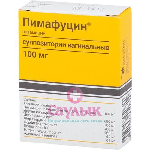 Суппозитории вагинальные торпедовидной формы, от белого с желтоватым оттенком до светло-желтого с коричневатым оттенком цвета.1 суппозиторий содержит:Действующие вещества: натамицин 100 мг.Вспомогательные вещества: цетиловый спирт - 690 мг, жир твердый - 700 мг, сорбитана триолеат - 460 мг, полисорбат 80 - 460 мг, натрия гидрокарбонат - 69 мг, адипиновая кислота - 64 мг.В стрипе из алюминиевой фольги 3 суппозитория. В упаковке 2 стрипа из алюминиевой фольги.
