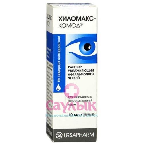 Особым физико-химическим свойством молекул натрия гиалуроната является их выраженная способность связывать молекулы воды. Водный раствор натрия гиалуроната обладает необходимой вязкостью и высокими адгезивными свойствами по отношению к передней поверхности глаза, за счет чего Хиломакс-Комод образует на поверхности роговицы равномерную, сохраняющуюся в течение длительного времени прероговичную слезную пленку, которая не смывается при моргании и не вызывает снижение остроты зрения. Тем самым глаз надолго защищен от ощущения сухости и раздражения, которые часто возникают при контакте с окружающей средой, а также при ношении контактных линз.