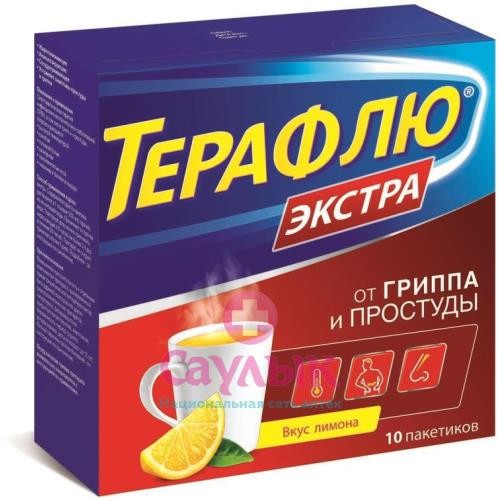 Внутрь. Содержимое одного пакетика растворяют в 1 стакане (250 мл) горячей, но не кипящей воды. Принимают в горячем виде. Повторную дозу можно принимать через каждые 4-6 часов (не более 3-4 доз в течение 24 часов). ТераФлю Экстра можно применять в любое время суток, но наилучший эффект приносит прием препарата перед сном, на ночь. Если не наблюдается облачения симптомов в течение 3 дней после начала приема препарата, необходимо обратиться к врачу. Пациентам не следует принимать ТераФлю Экстра более 5 дней.Особые популяции:Печеночная недостаточность: пациентам с нарушенной функцией печени или синдромом Жильбера необходимо уменьшить дозу или увеличить интервал между приемами ТераФлю Экстра.Почечная недостаточность: при наличии острой почечной недостаточности (клиренс креатинина <, 10 мл/мин) интервал между приемами ТераФлю Экстра должен быть не менее 8 часов.Пожилые пациенты: нет необходимости в корректировке дозы у пожилых пациентов.