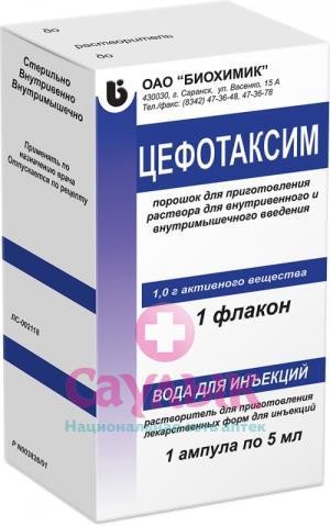 Активное вещество: цефотаксим натрия (в пересчете на активное вещество) – 1,0 г