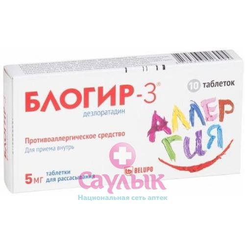 Не выявлено клинически значимых взаимодействий в исследованиях при совместном применении с кетоконазолом, эритромицином, азитромицином, флуоксетином и циметидином.Одновременный прием пищи или употребление грейпфрутового сока не оказывает влияния на эффективность препарата.БЛОГИР-3 не усиливает действие алкоголя на центральную нервную систему, тем не менее, во время пострегистрационного применения были зарегистрированы случаи непереносимости алкоголя и алкогольного опьянения. Поэтому, дезлоратадин одновременно с алкоголем следует применять с осторожностью.