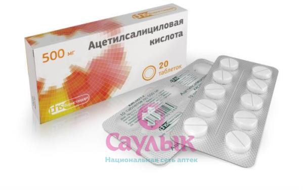 Ацетилсалициловая кислота дозировкой 500 мг выпускает по 20 таблеток в пачке.