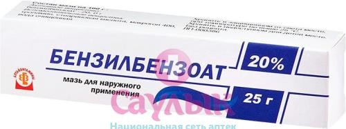 1 г мази содержит бензилбензоата 200 мг и водно-эмульсионной основы до 1 г