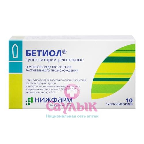 Купить БЕТИОЛ СУПП. РЕКТ. 15МГ+200МГ №10 в Казани