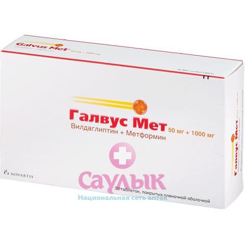 Купить ГАЛВУС МЕТ ТАБ. П/П/О 50МГ+1000МГ №30 в Казани