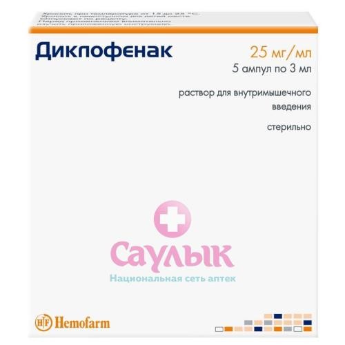 Купить ДИКЛОФЕНАК Р-Р Д/В/М ВВЕД. 25МГ/МЛ 3МЛ №5 в Казани